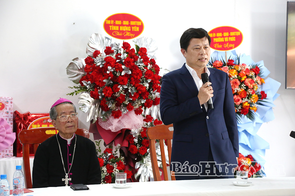 Thông báo những nét nổi bật về tình hình phát triển kinh tế - xã hội của tỉnh, đồng chí Phó Bí thư Thường trực Tỉnh ủy, Chủ tịch Ủy ban MTTQ Việt Nam tỉnh khẳng định những thành tựu vượt bậc của tỉnh đạt được trong thời gian qua, ngoài sự tập trung lãnh đạo, chỉ đạo, quản lý, điều hành của cấp ủy, chính quyền các cấp trong tỉnh còn có sự đồng thuận, ủng hộ rất tích cực của Nhân dân, trong đó có đồng bào Công giáo trên địa bàn tỉnh. Đồng chí ghi nhận, đánh giá cao những đóng góp của các vị chức sắc, tín đồ Công giáo và cá nhân nguyên Giám mục Giáo phận Thái Bình Phêrô Nguyễn Văn Đệ trong chăm lo đời sống vật chất, tinh thần cho đồng bào Công giáo ở địa phương, trong đó có các hoạt động thiện nguyện, chăm lo cho người nghèo, người có hoàn cảnh khó khăn trên địa bàn tỉnh trong thời gian qua. Với tinh thần “Kính Chúa, yêu nước”, “Sống phúc âm trong lòng dân tộc”, đồng chí Phó Bí thư Thường trực Tỉnh ủy, Chủ tịch Ủy ban MTTQ Việt Nam tỉnh mong muốn các vị chức sắc, chức việc, đồng bào Công giáo trong tỉnh tiếp tục phát huy tinh thần yêu nước, góp phần thiết thực xây dựng khối đại đoàn kết toàn dân tộc, vận động giáo dân trong tỉnh thực hiện tốt các chủ trương, đường lối của Đảng, chính sách, pháp luật của Nhà nước, hăng hái thi đua phát triển kinh tế, giữ gìn an ninh, trật tự, góp phần cùng cấp ủy, chính quyền và Nhân dân thực hiện thắng lợi các mục tiêu phát triển kinh tế, xã hội của địa phương. Đồng chí chúc nguyên Giám mục Giáo phận Thái Bình Phêrô Nguyễn Văn Đệ tiếp tục hoàn thành tốt trọng trách của mình và có nhiều đóng góp, cùng Đảng bộ, chính quyền và Nhân dân tỉnh Hưng Yên xây dựng quê hương ngày càng phát triển, đời sống vật chất, tinh thần của người dân ngày càng được nâng lên.