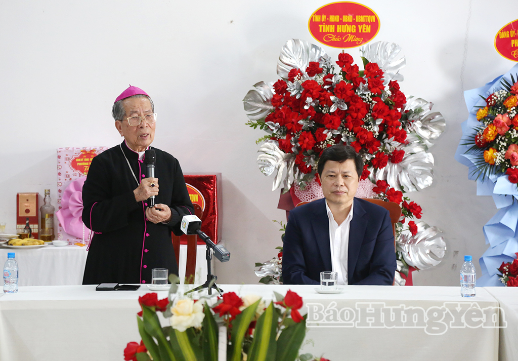 Nguyên Giám mục Giáo phận Thái Bình Phêrô Nguyễn Văn Đệ bày tỏ cảm ơn về sự quan tâm của Tỉnh ủy, HĐND, UBND tỉnh, Ủy ban MTTQ Việt Nam tỉnh và khẳng định đồng bào Công giáo tỉnh Hưng Yên sẽ tiếp tục thực hiện tốt phương châm “Sống tốt đời, đẹp đạo”, “Kính Chúa, yêu nước”, phát huy truyền thống đoàn kết lương - giáo, chung tay xây dựng quê hương, đất nước ngày càng văn minh, giàu đẹp.