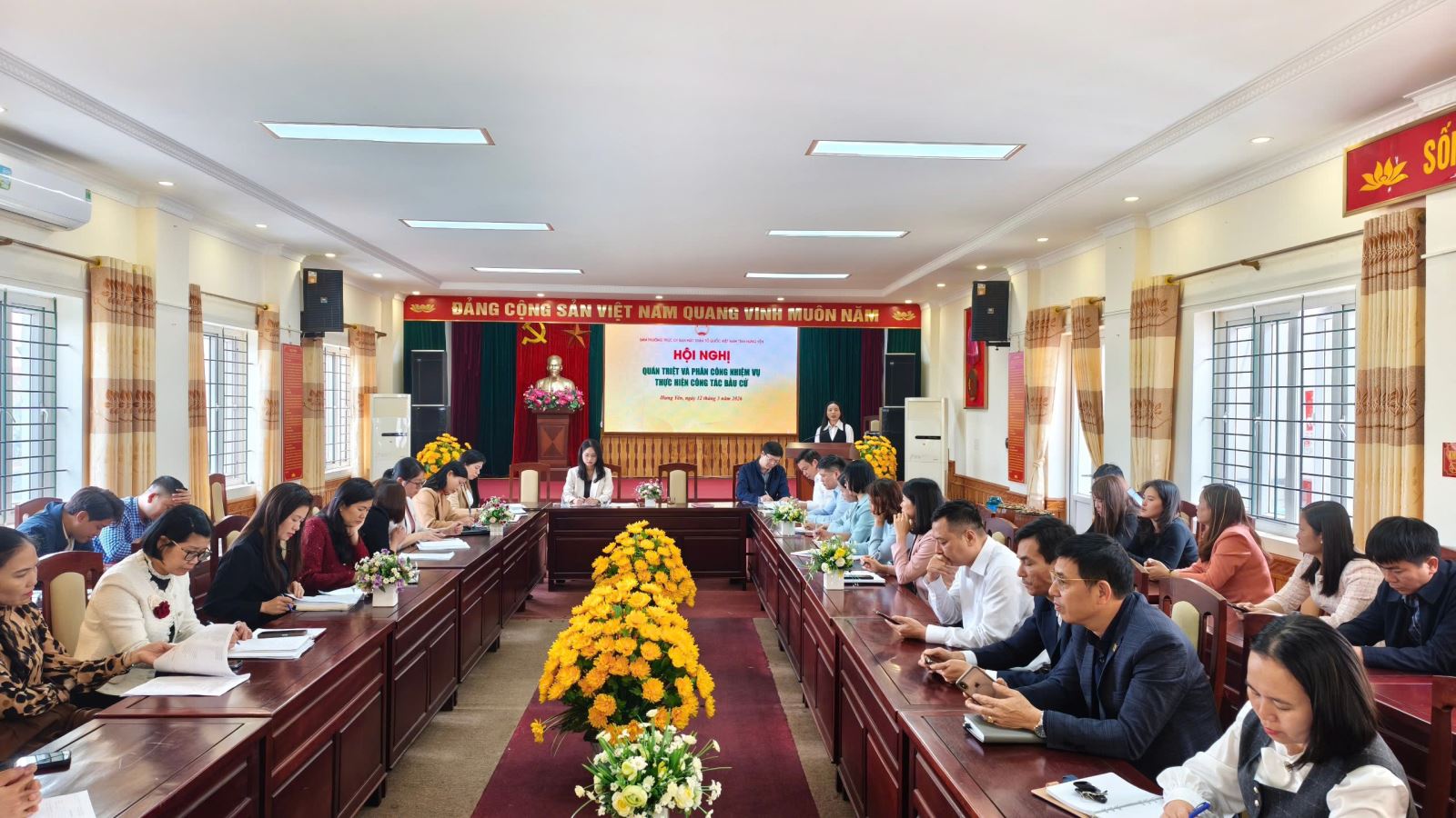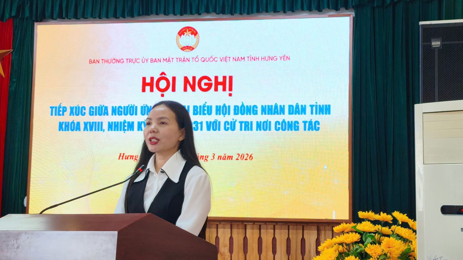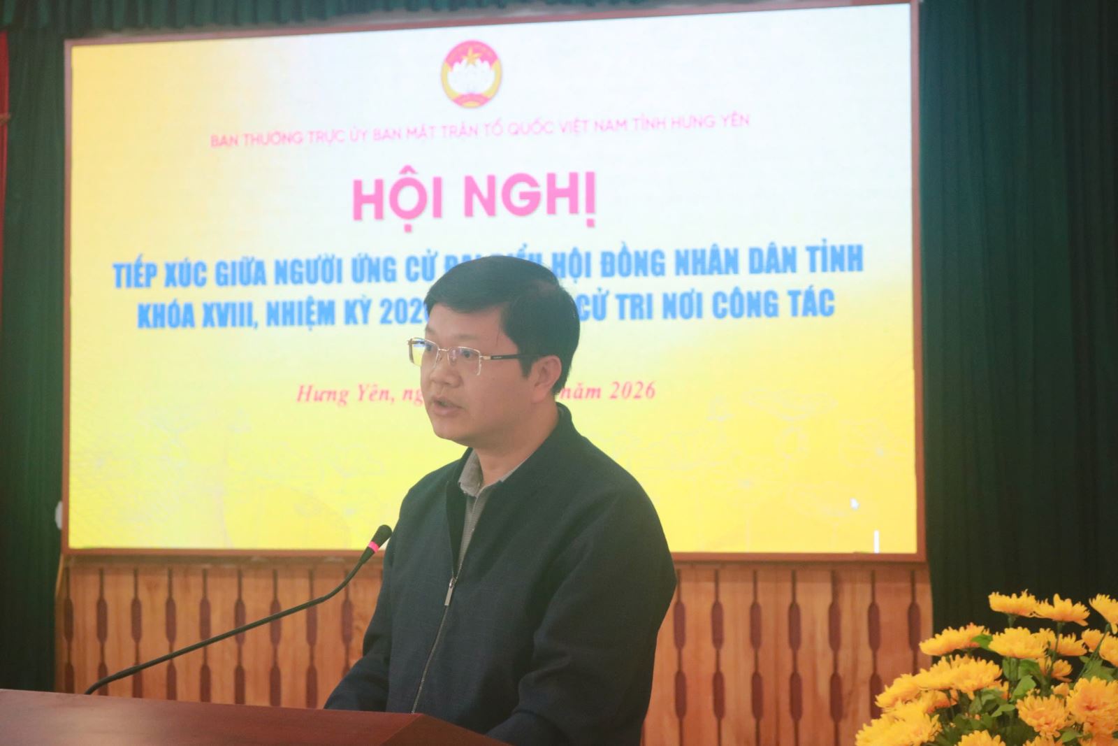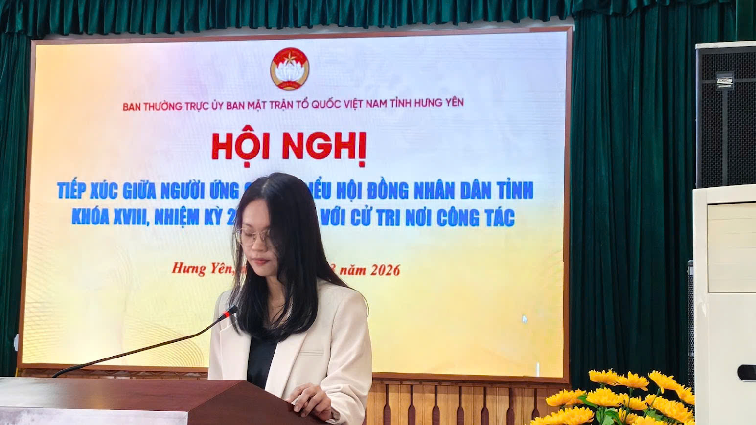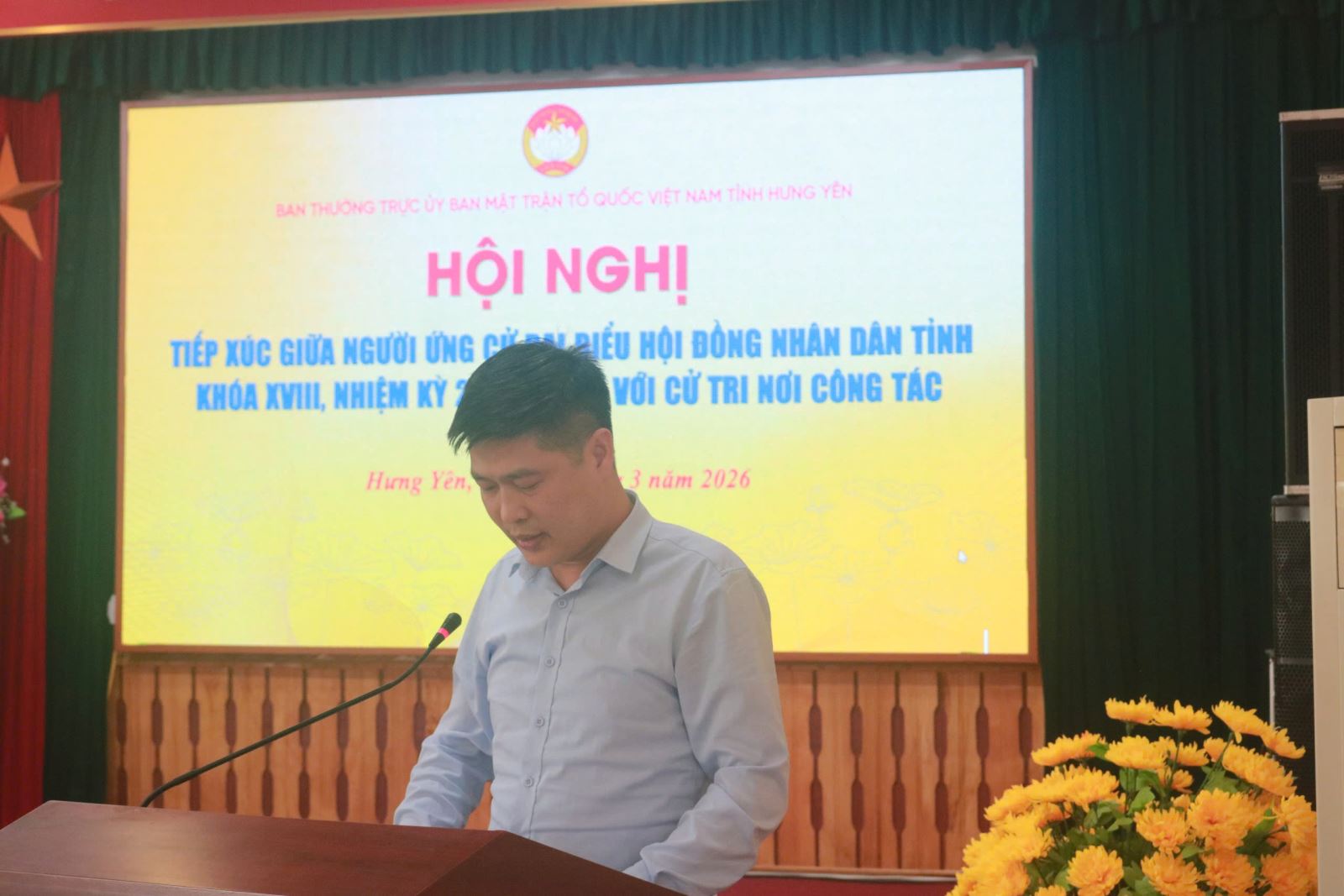 Sáng ngày 12/3, Cơ quan Ủy ban MTTQ Việt Nam tỉnh Hưng Yên, Ban Thường trực Ủy ban MTTQ Việt Nam tỉnh tổ chức hội nghị tiếp xúc giữa cử tri với những người ứng cử đại biểu HĐND tỉnh khóa XVIII, nhiệm kỳ 2026 - 2031 tại cơ quan Ủy ban MTTQ Việt Nam tỉnh, gồm các ông, bà: Ngô Thị Kim Hoàn, Ủy viên Ban Thường vụ Tỉnh ủy, Phó Chủ tịch Thường trực Ủy ban MTTQ Việt Nam tỉnh; Nguyễn Bật Khánh, Tỉnh ủy viên, Phó Chủ tịch Ủy ban MTTQ Việt Nam tỉnh, Dương Thành Chung, Chuyên viên Ban Tổ chức – Kiểm tra, Ủy ban MTTQ Việt Nam tỉnh; Nguyễn Phương Anh, Chuyên viên Ban Dân chủ, giám sát và phản biện xã hội, Ủy ban MTTQ Việt Nam tỉnh