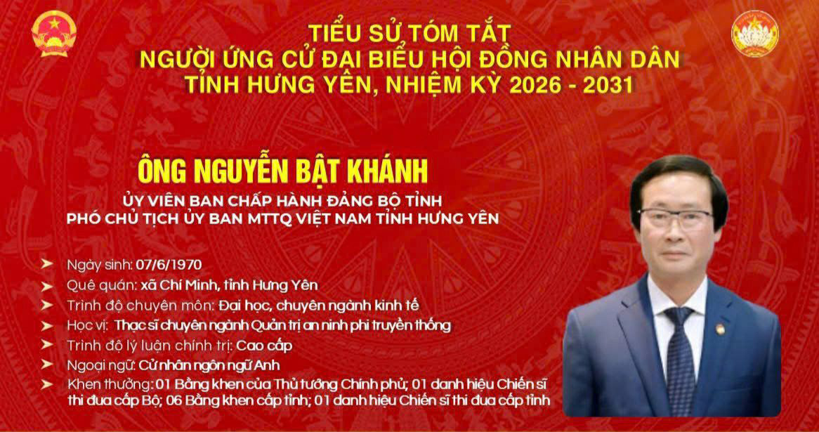 TIỂU SỬ VÀ CHƯƠNG TRÌNH HÀNH ĐỘNG CỦA ỨNG CỬ VIÊN ĐẠI BIỂU HĐND TỈNH KHÓA XVIII TẠI ĐƠN VỊ BẦU CỬ SỐ 11: ÔNG NGUYỄN BẬT KHÁNH